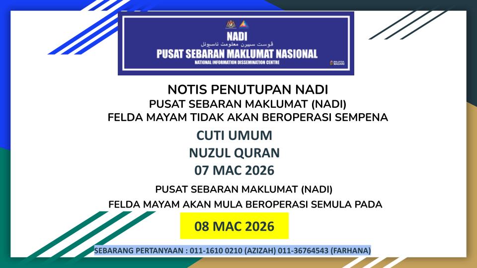 Nadi Felda Mayam tidak beroperasi kerana Cuti Umum (Sempena Nuzul Al-Quran).